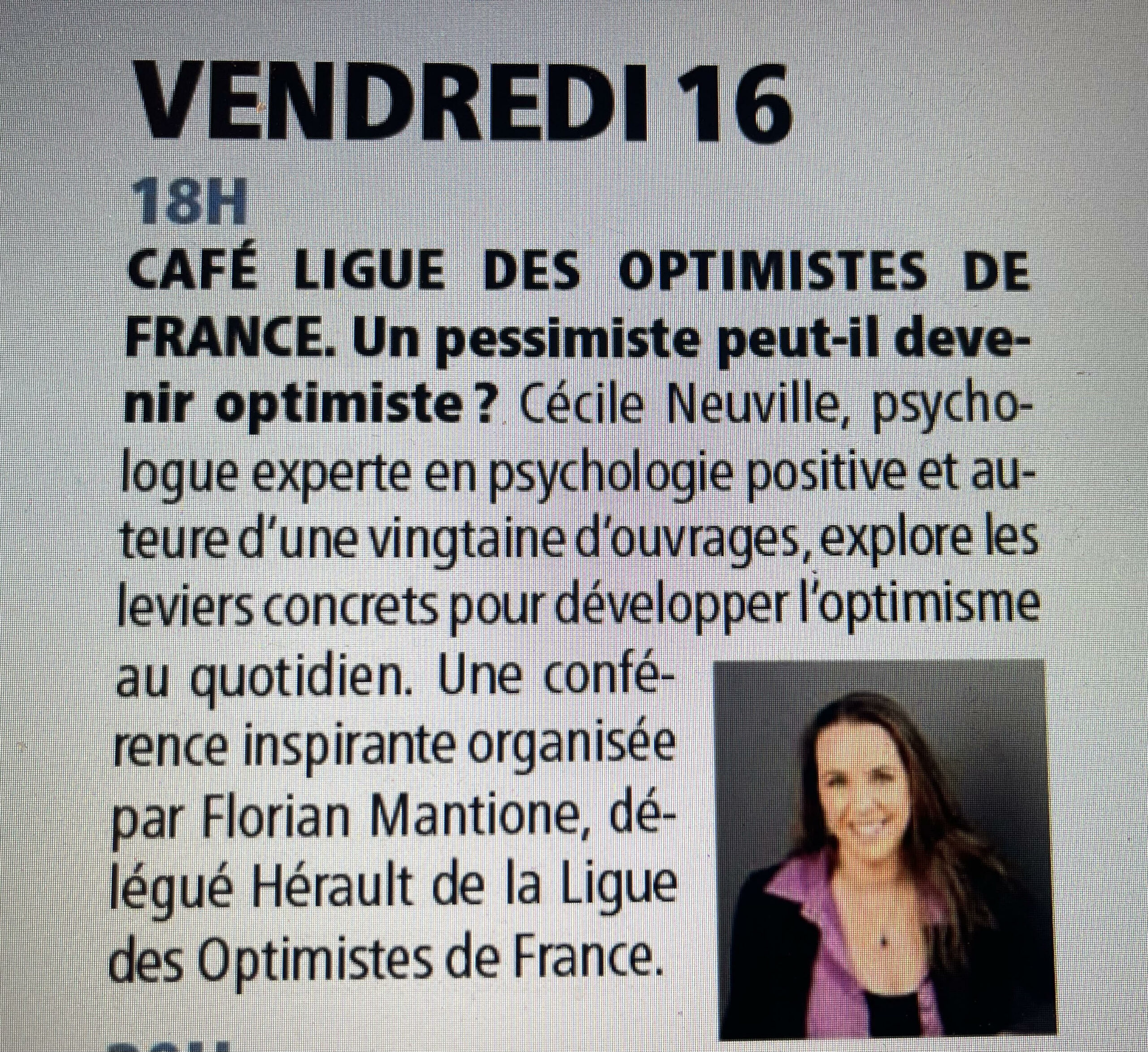Conférence suivie d'un diner optimiste. Intervenante Cécile NEUVILLE. Animateur Florian [...]